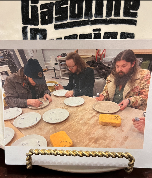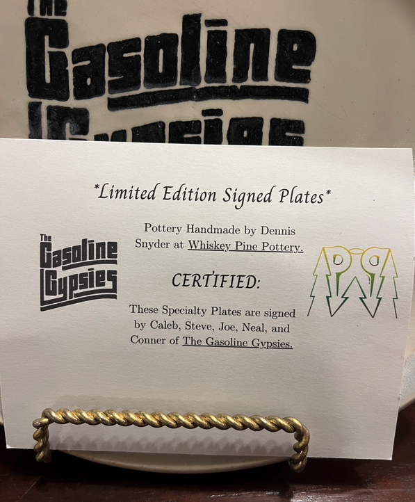 Each of these hand made plates are signed by the members of the band using pottery glazed come with a letter of authenticity. They are then kiln-fired, making the signature a permanent part of each plate. Each of these were lovingly made by our good friends at Whiskey Pine Pottery in our home town of Port Huron, Michigan.